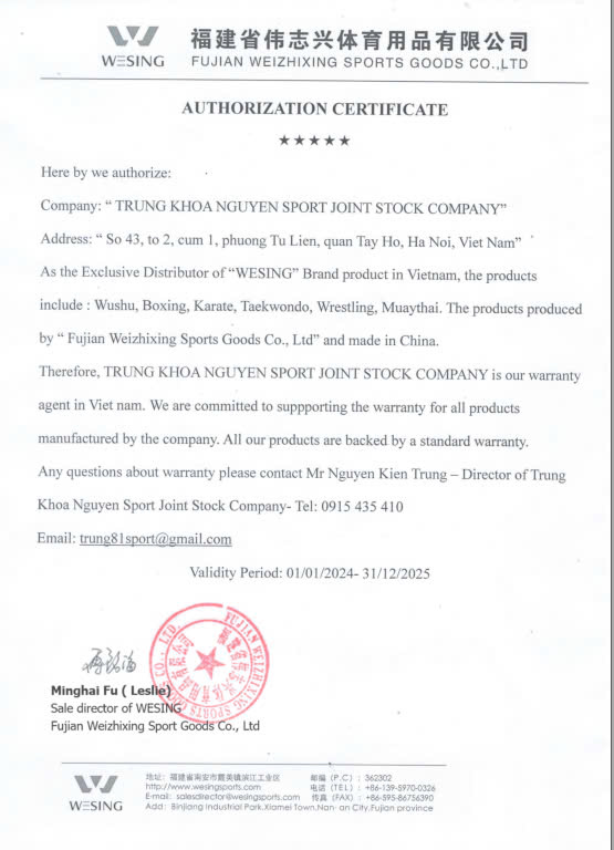 Để biết thêm thông tin về sản phẩm về các sản phẩm của Wesing, quý khách hàng vui lòng liên hệ trực tiếp cho của hàng Trung Khoa Nguyễn Sport theo số địa chỉ:
